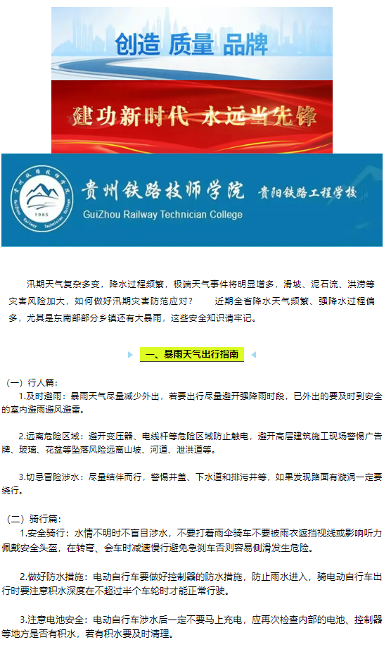汛期安全工作提示