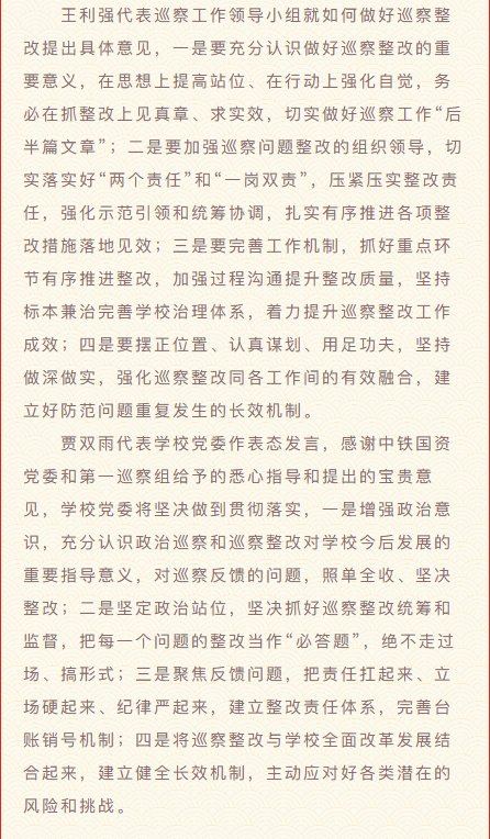 中铁国资党委第一巡察组向贵阳铁路工程学校党委反馈巡察情况