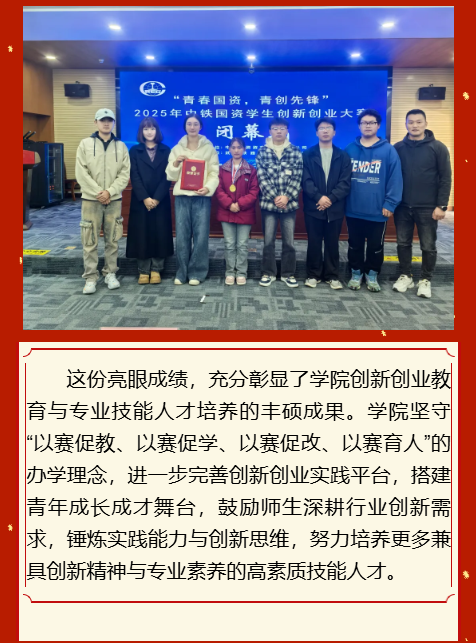 喜报!学院在2025年中铁国资学生创新创业大赛中斩获佳绩